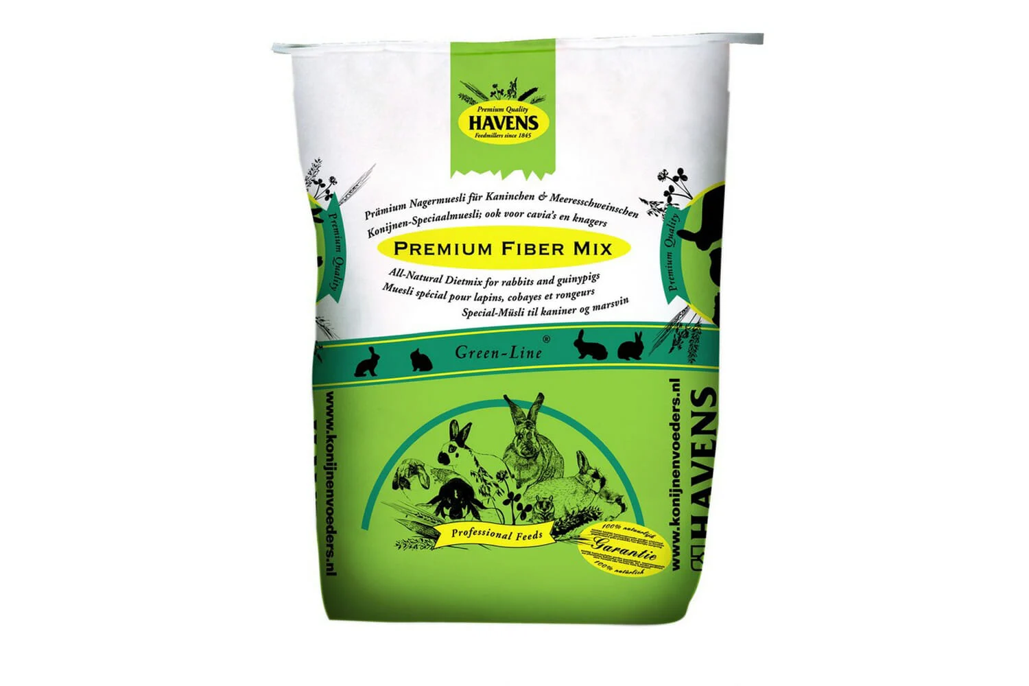 Havens Premium Fiber Mix is een uiterst exclusieve knaagdierenmuesli opgebouwd uit ontsloten granen, luzernefibers, maïs- en gerstvlokken en een speciale vitaminekorrel met extra Vitamine A, D, E en de voor de algemene weerstand en voor cavia’s belangrijke vitamine C.